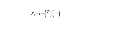Ag-O系固-液轉(zhuǎn)變過程進(jìn)行到一定限度時,系統(tǒng)達(dá)到平衡,自由能不再發(fā)生變化,且為最小。同時,固態(tài)、液態(tài)中的Ag原子濃度也不再發(fā)生變化,平衡系數(shù)KI表示為: