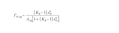 將式(32)代入式(39)中,可以得到表面過剩量關(guān)于溫度和氧氣壓力的表達(dá)式,即: