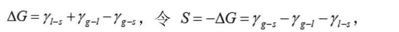 鋪展,是指在等溫、等壓的條件下,液固界面取代了氣固界面,然后產(chǎn)生了氣液界面,這樣一個(gè)物理過(guò)程。等溫、等壓條件下,可逆鋪展單位面積時(shí),Gibbs自由能的變化值為