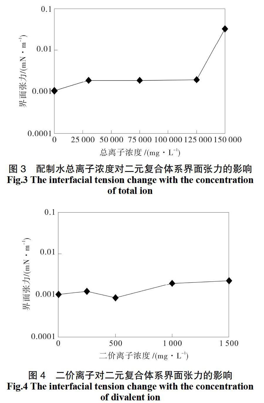 2.3礦化度、二價(jià)離子對(duì)界面張力的影響