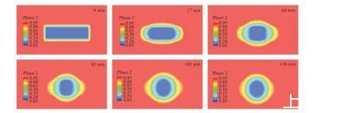 圖6聚合物液滴形態(tài)隨時(shí)間演化(仿真)