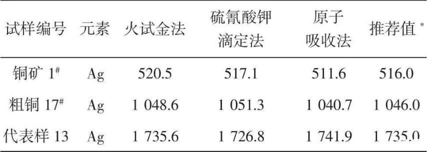 按試驗方法,用不同含量的銅物料樣品進行分析,并與其它測定銀元素方法的分析結果對照,結果見表4。