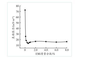 2.1 EMI質(zhì)量分?jǐn)?shù)對表面張力的影響