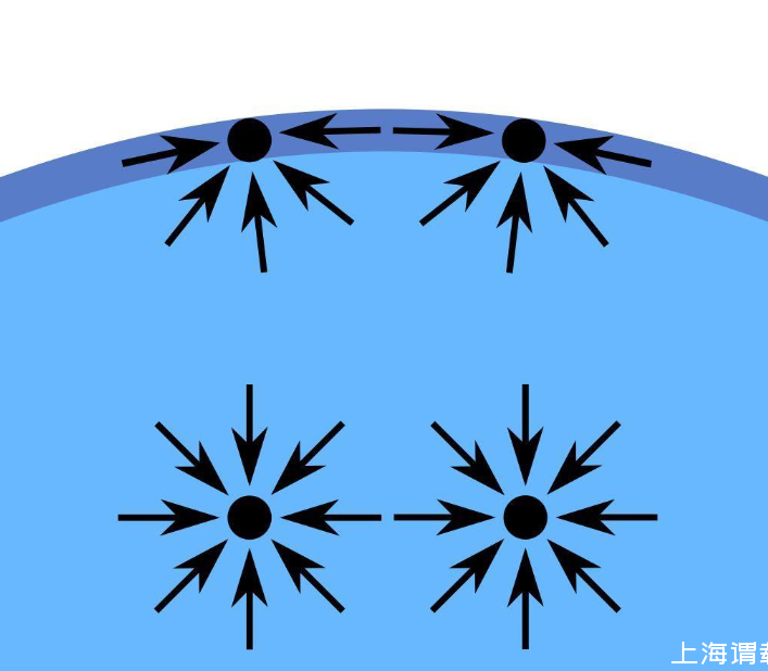 再次,水的表面張力在這里起到了一定的作用。液相與氣相接觸時會形成一個表面層,在這個表面層上的液體分子受到內(nèi)部液體的吸引力大于外面氣體分子給的吸引力,這些分子就有向液體內(nèi)部聚攏的趨勢,這種趨勢形成了表面張力。在表面張力的作用下,水面像是一個緊繃的橡膠膜,如果用手掌去拍沒有破除表面張力的水面自然就覺得疼。