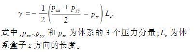 每個模型都經過100 ns的MD模擬,保證油水界面充分達到平衡狀態(tài),油水界面張力的計算采用50 ns的數據,通過3次獨立模擬獲得界面張力數值。本文中對界面張力(IFT)的計算方法選用Gibbs界面張力計算法,模型中油水界面位于XY平面內,界面張力計算公式為