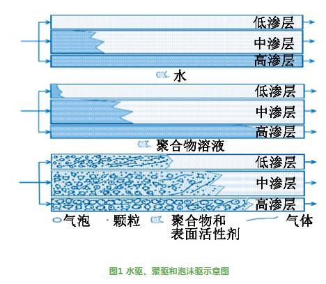 圖1水驅(qū)、聚驅(qū)和泡沫驅(qū)示意圖