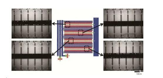 目前制約微流控技術(shù)實際應(yīng)用的重要因素是其處理通量低,無法滿足實際工業(yè)生產(chǎn)的需求。以上述微通道中萃取稀土離子為例,該過程連續(xù)相的流量僅為4mL/min,顯然不能滿足大量浸礦廢水處理的需求。目前關(guān)于微萃取設(shè)備的放大主要有兩種途徑。其中,微通道并行放大是大規(guī)模生產(chǎn)乳液和氣泡的一種常用可靠途徑。Jeong和Chen等設(shè)計了一種并行聚焦流微通道用來制備氣液液雙乳液,實現(xiàn)了在10cm×10cm的PDMS上并行了400個聚焦流微通道(圖7)。雙乳液的生產(chǎn)通量可達3L/h,可在1h內(nèi)制備1011個高度單分散的中空液滴。利用該設(shè)備進行稀土離子的萃取結(jié)果表明相比于單一微通道結(jié)構(gòu),該設(shè)備的處理通量提高了10倍,且稀土離子的萃取率可在數(shù)秒內(nèi)提高至98%以上。本文作者所在的研究團隊發(fā)明的膜分散微萃取設(shè)備同樣可以實現(xiàn)微通道萃取設(shè)備的有效放大,對于膜分散微萃取設(shè)備,其分散介質(zhì)為含有眾多規(guī)則排列微孔的不銹鋼薄膜,每個微孔相當(dāng)于一個微通道,其處理量可提高到200mL/min;該團隊進一步發(fā)明多通道膜分散微結(jié)構(gòu)設(shè)備,已經(jīng)成功應(yīng)用到萬噸級/年處理量的氣體吸收和液液萃取過程,為稀土萃取回收過程放大提供了堅實的基礎(chǔ)。從氣液液微分散萃取過程的放大研究進展來看,處理通量已經(jīng)不再成為制約其發(fā)展的問題,多通道膜分散微萃取設(shè)備有望實現(xiàn)高通量快速富集回收稀土離子的目標(biāo)。