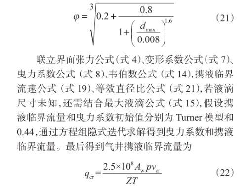 4、考慮液滴尺寸和變形影響的攜液臨界模型