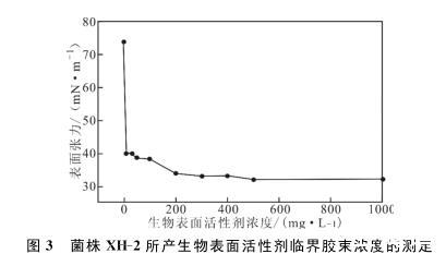 圖3菌株XH-2所產(chǎn)生物表面活性劑臨界膠束濃度的測(cè)定