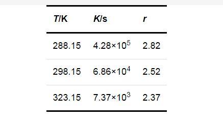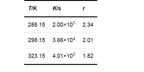 式中:K和r均為方程參數(shù),可由實(shí)驗(yàn)數(shù)據(jù)回歸得出.將圖1的數(shù)據(jù)回歸結(jié)果列于表1.進(jìn)一步說明了過飽和度對(duì)成核誘導(dǎo)期的影響在較低的溫度下更為顯著.