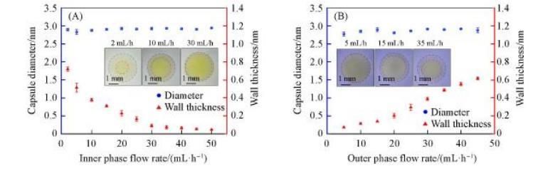 2.3內(nèi)相/外相流速對水/水微囊直徑和壁厚的影響