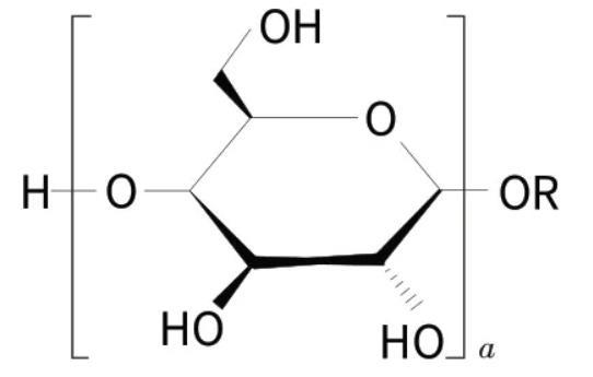 烷基糖苷(APG,結(jié)構(gòu)式如下,其中a是平均聚合度)是一類可生物降解的天然非離子表面活性劑,被國(guó)際公認(rèn)為“綠色”功能表面活性劑。烷基糖苷具有優(yōu)良的配伍性能,起泡性好(泡沫豐富細(xì)膩),耐強(qiáng)堿和電解質(zhì),有良好的增稠能力,與皮膚相容性好,無(wú)毒,刺激性極低。