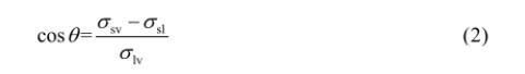 潤濕三相線交匯處的固-液界面張力(σsl)、液-氣界面張力(σlv)及固-氣界面張力(σsv)可決定潤濕性的好壞,當潤濕過程達到平衡時即可得到Young’s方程。