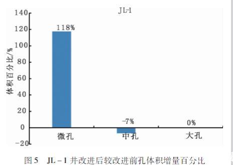 用參數(shù)校正后的方程處理數(shù)據(jù)發(fā)現(xiàn)樣品微孔孔體積占比增加,較原始方程處理得到的結(jié)果增加了118%;而中孔孔體積占比減小,較原始方程處理得到的結(jié)果減小了7%;大孔孔體積占比不變。用改進(jìn)后的Washburn方程對(duì)松遼盆地青山口組JL-1、JL-3、SL1-9、SL1-13井的泥頁(yè)巖樣品的數(shù)據(jù)處理得出:該地區(qū)主要以微孔、中孔為主,發(fā)育有小部分大孔。統(tǒng)計(jì)壓汞實(shí)驗(yàn)數(shù)據(jù)發(fā)現(xiàn)微孔占比平均12%左右,中孔占比平均為86%,大孔占比平均為2%。依據(jù)實(shí)驗(yàn)數(shù)據(jù)評(píng)估,松遼盆地青山口組地區(qū)油氣主要儲(chǔ)集在中孔里面。因此,提高微小孔(<50 nm)烴源巖儲(chǔ)集層的勘探開發(fā)有十分重要的意義。