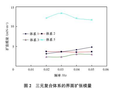 圖2三元復(fù)合體系的界面擴(kuò)張模量