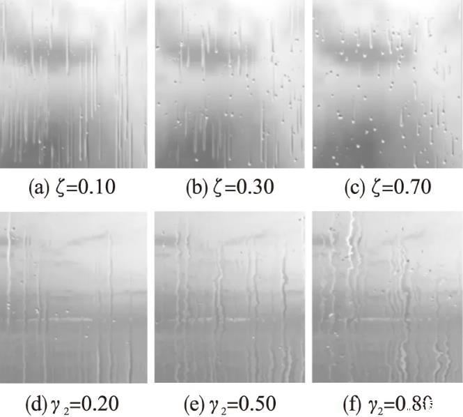在未來工作中,將繼續(xù)對玻璃窗上水滴的運(yùn)動控制進(jìn)行研究,包括玻璃窗表面粗糙度對水滴尾部褪色的影響,玻璃窗平移或旋轉(zhuǎn)對水滴運(yùn)動行為的影響等,完善水滴運(yùn)動細(xì)節(jié),進(jìn)一步在流固界面動力學(xué)模擬方面做有益探索。