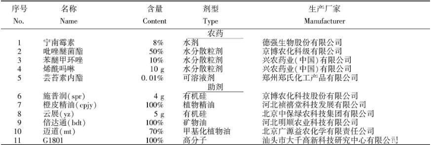 表1辣椒病害防治常用農(nóng)藥及助劑的信息