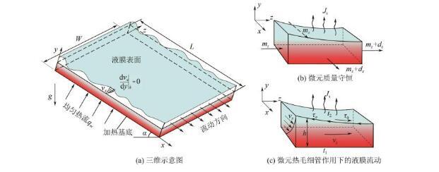為增強數(shù)學(xué)模型的實用性,在構(gòu)建傾斜加熱壁面上液膜數(shù)值模擬之前,提出以下基本假設(shè)。