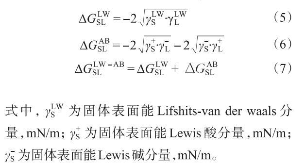 根據(jù)DLVO擴(kuò)展理論,首先分別通過(guò)式(5)和式(6)計(jì)算LW相互作用自由能(和AB相互作用自由能()。然后,通過(guò)式(7)計(jì)算去離子水溶液中的液-固界面作用能()。