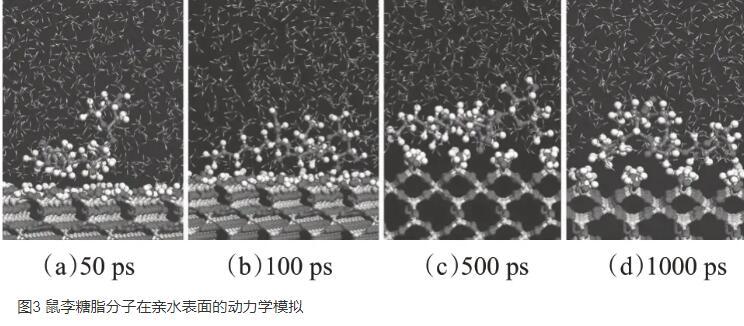 圖3鼠李糖脂分子在親水表面的動(dòng)力學(xué)模擬