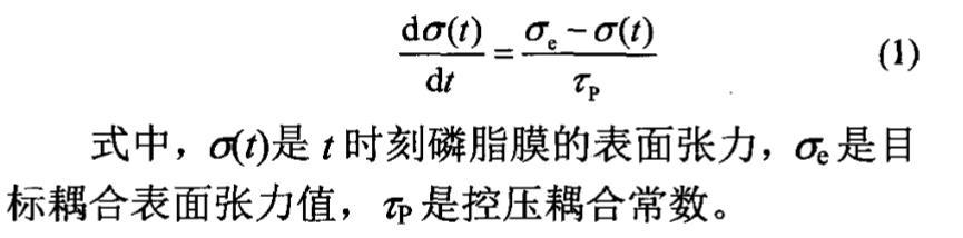 式中,σ(t)是t時刻磷脂膜的表面張力,σe是目標(biāo)耦合表面張力值,τP是控壓耦合常數(shù)。