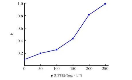 圖4 CPFE質(zhì)量濃度對油滴破裂速率常數(shù)的影響