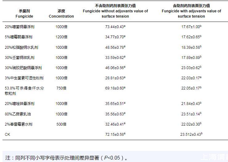 2.3助劑對(duì)殺菌劑藥液表面張力的影響