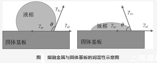 越大,說明液態(tài)金屬對(duì)固體基板的潤濕性越差;反之,越好。當(dāng)