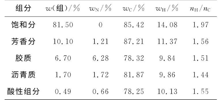 1.2.2原油組分元素分析用ElementarVario EL(Germany)元素分析儀器測(cè)定原油中各組分元素的質(zhì)量分?jǐn)?shù),結(jié)果見表2。