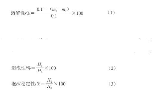 將樣品配制為質(zhì)量濃度1 g/100 mL的分散液,采用芬蘭Kibron公司生產(chǎn)的Delta-8全自動(dòng)高通量表面張力儀按照GB/T 27842—2011《化學(xué)品動(dòng)態(tài)表面張力的測(cè)定快速氣泡法》的方法測(cè)定其表面張力。