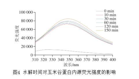 圖4水解時間對玉米谷蛋白內(nèi)源熒光強度的影響