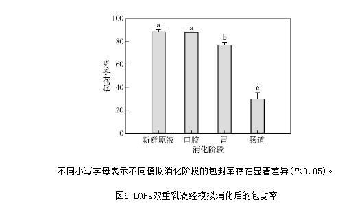 圖6 LOPs雙重乳液經(jīng)模擬消化后的包封率