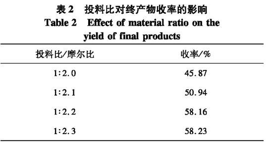 固定反應(yīng)溫度90℃,反應(yīng)時(shí)間14 h,考察投料比對終產(chǎn)物GAC-312收率的影響,結(jié)果見表2。