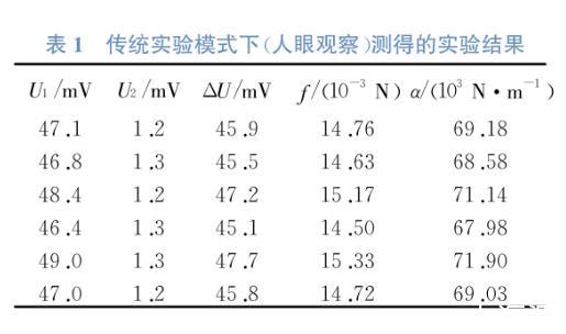 表1傳統(tǒng)實驗模式下(人眼觀察)測得的實驗結果