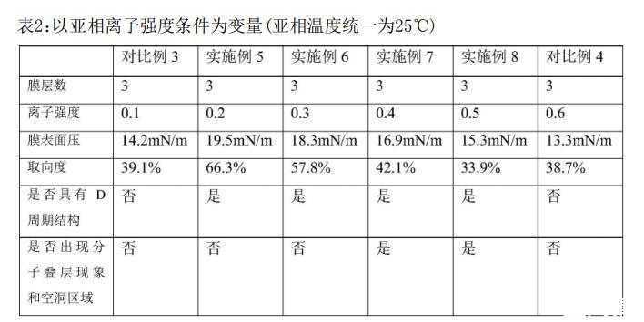?對比實(shí)驗(yàn):亞相溫度過高(>30°C)或離子強(qiáng)度過低(<0.2)會(huì)導(dǎo)致纖維排列混亂(對比例1–4),超純水亞相則無法形成D周期結(jié)構(gòu)(對比例5)。