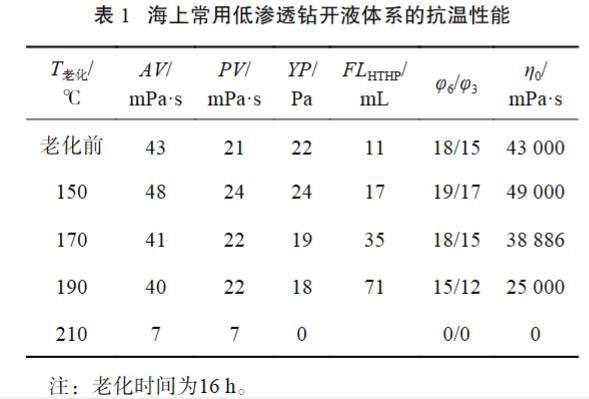 表1海上常用低滲透鉆開(kāi)液體系的抗溫性能