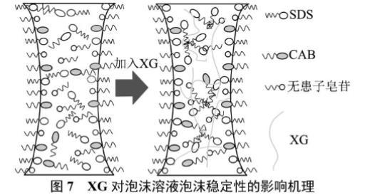 圖7 XG對(duì)泡沫溶液泡沫穩(wěn)定性的影響機(jī)理