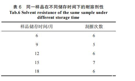 表6同一樣品在不同儲存時間下的耐溶劑性