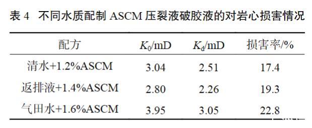 表4不同水質(zhì)配制ASCM壓裂液破膠液的對巖心損害情況