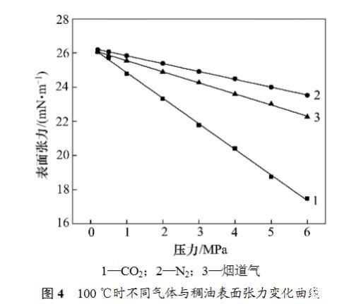 6)在一定的壓力和溫度條件下,每個煙道氣-稠油系統(tǒng)的表面張力測定重復3次,以保證較好的重復性。