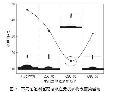 圖9不同起泡劑復(fù)配溶液在無機(jī)礦物表面接觸角
