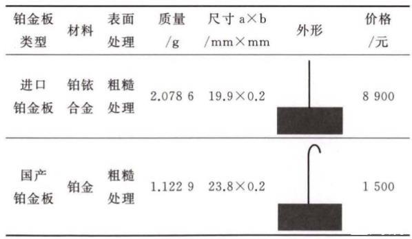 原配進口鉑金板和BZY-1原配國產(chǎn)鉑金板的主要區(qū)別如表1。