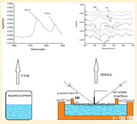 本研究為HI-Langmuir單層膜的光學性質(zhì)提供了新的數(shù)據(jù)。 紫外線 ? 空氣中的可見光 ? 水界面與表面壓力相關 ? 面積等溫線曲線。 根據(jù)HI和FITC標記的HI-Langmuir單層的布儒斯特角和表觀熒光顯微鏡,未觀察到二維結(jié)構(gòu)域的形成。 通過IRRAS測量,人們觀察到蛋白質(zhì)在2-D中保持α-螺旋構(gòu)象,知道IRRAS方法允許檢測酰胺I和酰胺II帶,這與蛋白質(zhì)樣品中的α-螺旋和β-折疊相關。19,20
