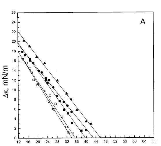吲哚西丁的π也顯著增加,顯示其插入SOPC單層(圖1b)。然而,吲哚青素的膜活性明顯高于magainin 2,具有πc≈65mN/m,用于SOPC膠片。與magainin 2類似,單層中POPG含量的增加增強(qiáng)了吲哚青霉素的滲透,增加了?π低于~38 mN/m,與肽和脂質(zhì)單層之間的靜電相互作用一致。然而,在后一個(gè)表面壓力值之上,吲哚西丁引起的π增量被POPG減弱。因此,與magainin 2相反,在存在POPG的情況下,πc減小(圖1c),在XPG=0.4時(shí)從~65 mN/m(對(duì)于SOPC單層)變?yōu)閪50 mN/m。在SOPC單層中,吲哚西丁增加的π也被膽固醇(X=0.1)增加,而πc降低至~54 mN/m。圖1所示的magainin 2和吲哚西丁的模式非常不同,后一種肽的明顯交叉點(diǎn)為~38 mN/m。