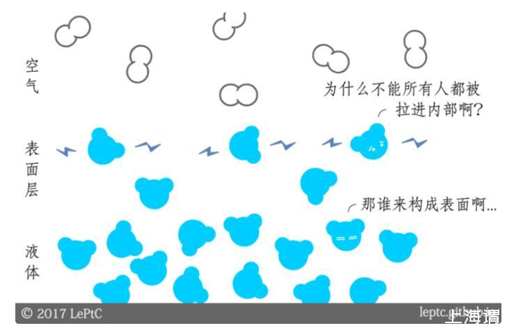 要解釋表面張力,我們首先要走進(jìn)微觀世界,看看那些液體分子之間是如何互動(dòng)的: