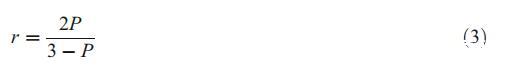 其中r0是在沒有旋轉(zhuǎn)自由度的情況下獲得的發(fā)射各向異性的極限值,t是熒光團激發(fā)態(tài)的平均壽命,t是絕對溫度,k是玻爾茲曼常數(shù),V是探針的有效分子體積,η是探針周圍的粘度。從等式2可以清楚地看出,較大的各向異性對應(yīng)于固定溫度下更剛性的環(huán)境。通過以下等式將從信標2000獲得的偏振值(P)轉(zhuǎn)換為r值。