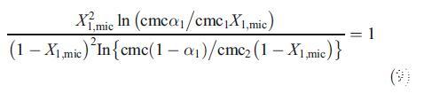 為了討論由兩種二元混合物形成的混合膠束的性質(zhì),即混合膠束是否顯示理想或非理想行為,我們使用了偽相分離模型[19]。根據(jù)該模型,膠束被認(rèn)為是與含有相應(yīng)單體的溶液平衡的宏觀相。對(duì)于二元表面活性劑混合物,理想cmc由方程[19]關(guān)聯(lián):