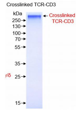 膜蛋白復(fù)合體TCR-CD3交聯(lián)后進(jìn)行凝膠過濾分子篩層析,進(jìn)行SDS-PAGE實(shí)驗(yàn),發(fā)現(xiàn)得到比較純的復(fù)合體。