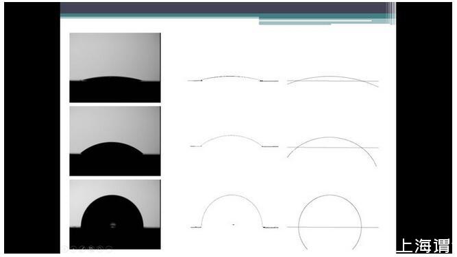 平板固體和液體的話有照相法,直接把液滴照片拍下來(lái),軟件分析。又分為躺滴法和懸滴法。