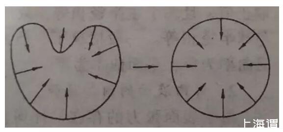 當(dāng)你吹泡泡的時候,無論用什么泡泡圈,吹出來的泡泡都是近球形的,童鞋們會懊惱為什么:不能吹個泡泡都是愛你的形狀呢?從受力分析而言,當(dāng)泡泡為不規(guī)則形狀時,其相鄰的兩點(diǎn)曲率不一樣,則表面張力方向不一樣,根據(jù)受力分析,水會向合力的方向流動,最后平衡狀態(tài)為相鄰兩點(diǎn)受力一致,曲率一致。推廣到整體,就是一整個球體形狀的形成。